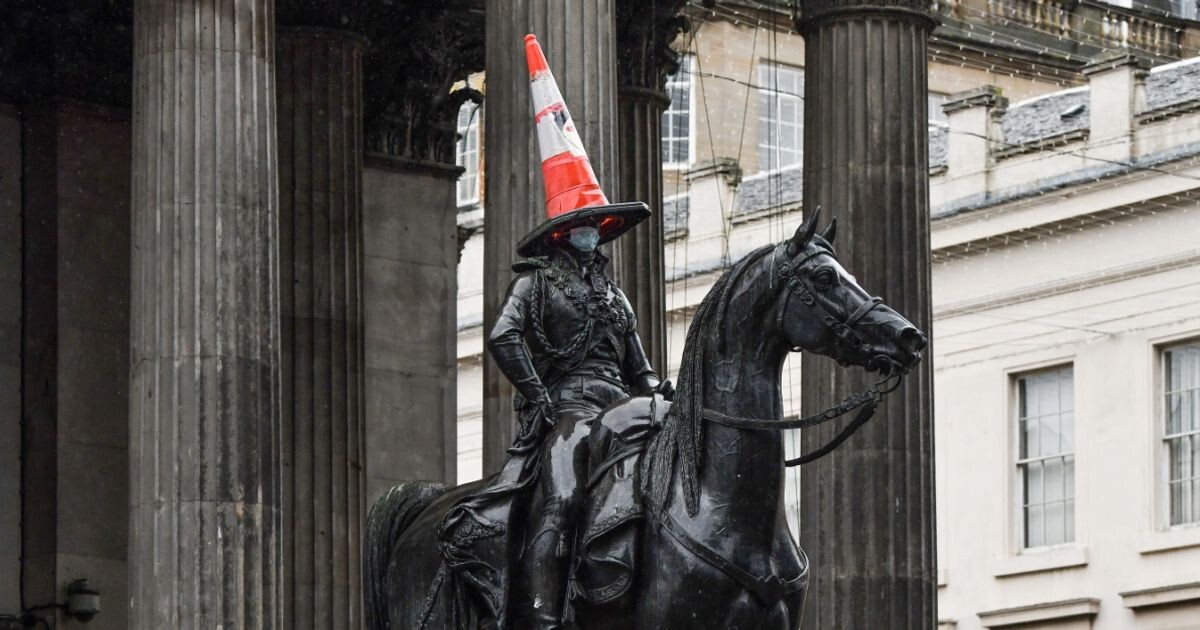 Сегодня поговорим о том, как нетривиальный шотландский юмор сделал из скульптуры в Глазго самую известную из статуй победителя Наполеона. Речь о памятнике Артуру Уэлсли, герцогу Веллингтонскому, установленному в городе в 1844 году. Исторически шотландцы относились к Франции, мягко. говоря, гораздо более лояльно, нежели к Англии. В Столетнюю войну шотландские гвардейцы служили при дворе короля Карла VII, сражались вместе с Жанной д'Арк против англичан. И шотландско-английское «глубинное противостояние» явно не кончилось с образованием в начале XVIII века королевства Великобритания. Поэтому допустим, что мотивация шутников из города Глазго, водружающих дорожный конус на голову статуи герцога Веллингтона, вовсе не так поверхностна. Победитель Наполеона при Ватерлоо для шотландца не может быть ближе, чем побежденный император французов, хоть полк Шотландских серых и прославился в этом сражении. Говорят, традиция наряжать Артура Уэлсли (а иногда и его лошадь) в конусы пошла из 1980-х. Местн