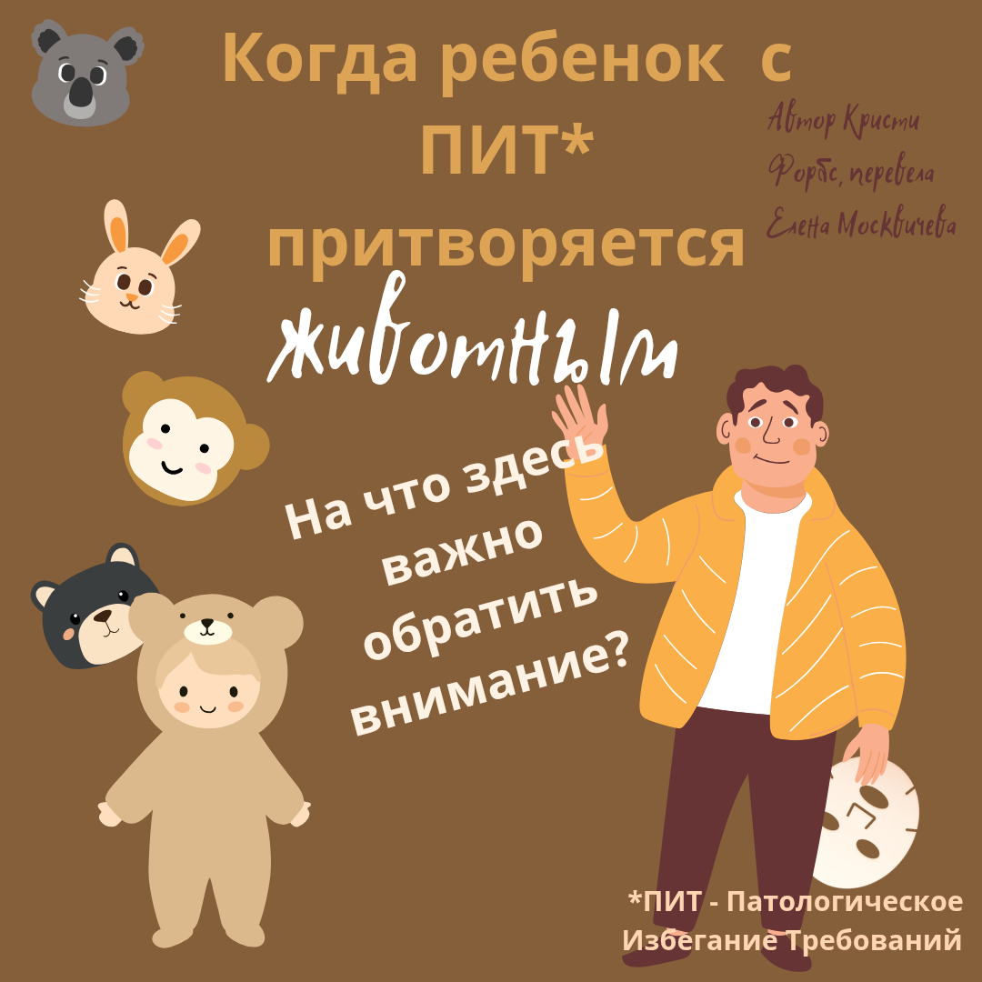Я также человек с ПИТ и меня регулярно спрашивают, что делать с детьми, у которых ПИТ, когда они становятся животными или другими существами (обычно кем угодно, кроме человека) и живут так с утра до ночи.