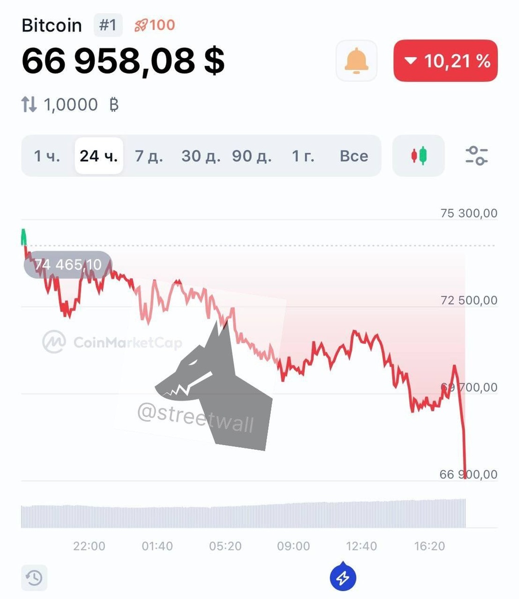 Биткоин рухнул уже до $66 000.