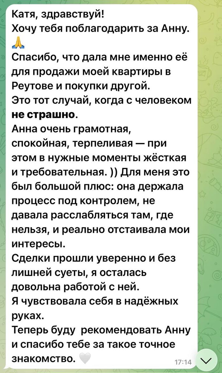». Как мечта меняла маршрут и все равно сбылась Иногда кажется, что путь к цели должен быть прямым. Но самые интересные истории — как раз про гибкость и умение перестраиваться Хочу поделиться историей нашей клиентки Татьяны. Она обратилась летом с запросом продать квартиру, которая морально устарела, и обменять её на что-то более перспективное. И знаете что? В процессе планы менялись не один раз. И для нас это абсолютно нормально! Жизнь вносит коррективы, а наши задачи — помогать вам находить лучший выход на любом витке. В итоге мы не просто продали квартиру. Мы сделали целую финансовую перезагрузку: 1. Продали старую квартиру. 2. Подобрали новую — дешевле, а на разницу решили другие вопросы. 3. И Татьяна осуществила свою давнюю-давнюю мечту - купила студию в Батуми, рядом с морем! 4. Новую квартиру здесь мы поможем сдать в аренду — и у Татьяны базовый пассивный доход и тыл, куда всегда можно вернуться Счастье клиента — в деталях. И мне очень ценно, что Татьяна нашла время и н
