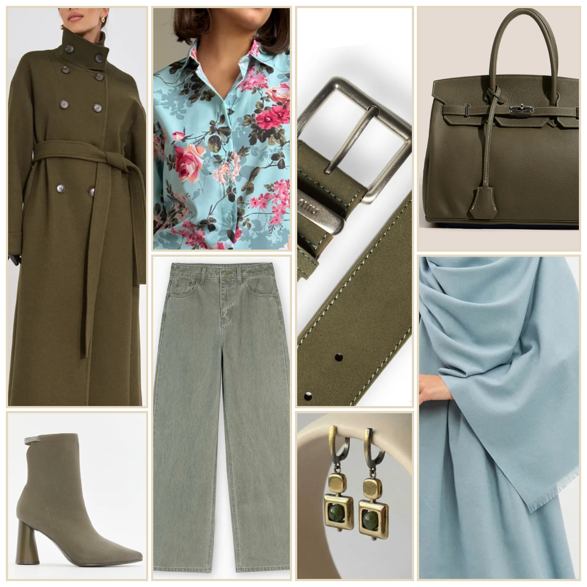 Нужно подбирать сложные сочетания, учитывая цвета принта. Допустим, в узоре есть голубо-бирюзовый и цвет хаки. Чтобы выглядеть гармонично и актуально, приходится играть в сложный пазл: обувь или верхняя одежда должны перекликаться с одним из этих оттенков, сохраняя общий стиль (например, милитари).