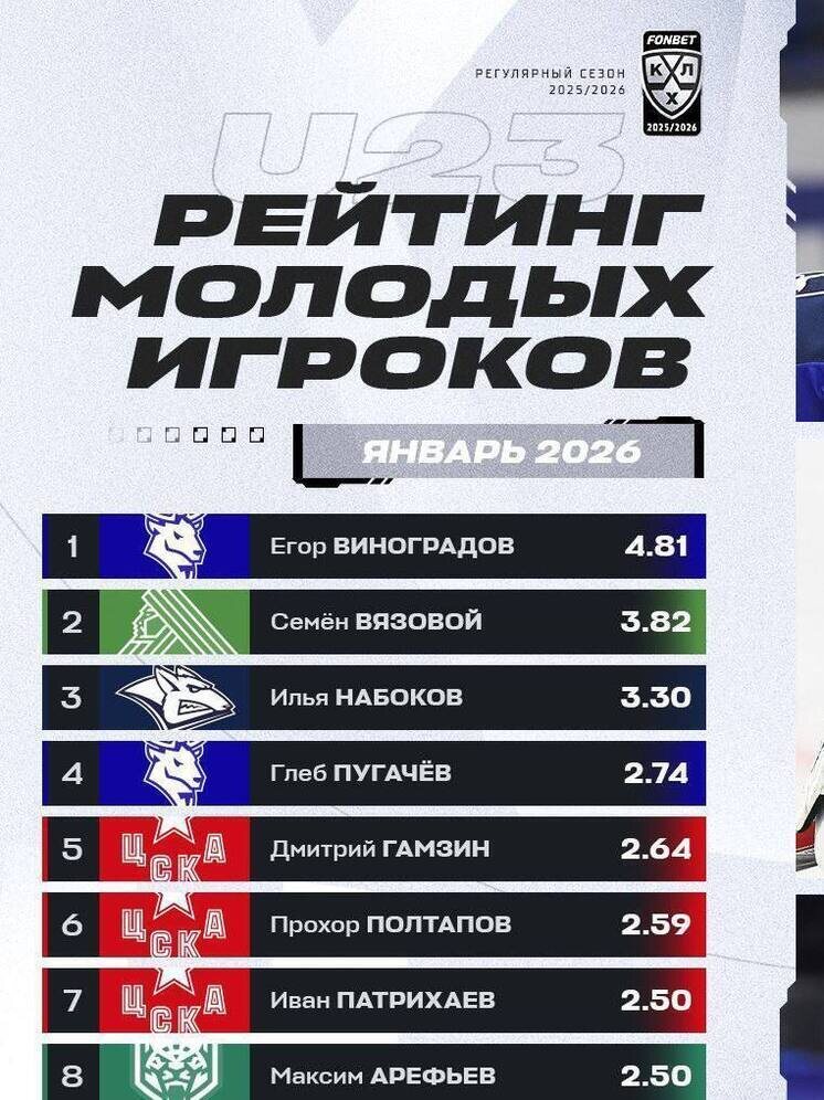 На сайте Континентальной хоккейной лиги опубликован Топ-10 лучших молодых игроков по итогам первого месяца 2026-го года. В списке присутствуют два нападающих из нижегородского «Торпедо». На 4-й строчке расположился 17-летних Глеб Пугачев. Яркий старт в сильнейшей лиге континента позволил парню ворваться во всевозможные рейтинги. За 11 игр нападающий набрал 3 балла (2+1) с коэффициентом полезности «+8». Возглавил рейтинг, опередив двух вратарей — Илью Набокова («Металлург») и Семена Вязового («Салават Юлаев»), лучший бомбардир и снайпер «Автозаводцев» — Егор Виноградов. Мы не устанем говорить о том, как 23-летний хоккеист раскрылся в этом сезоне при Алексее Исакове. Во второй половине января лидер «Торпедо» набрал очки в пяти играх кряду, поразив ворота «Драконов», СКА (дубль), «Сибири» и «Северстали». Сюда же добавляются и 2 голевые передачи, включая на решающий гол, в гостевой игре против «Локомотива». В совокупности «Вино» заработал 17 очков в 12 матчах месяца.
