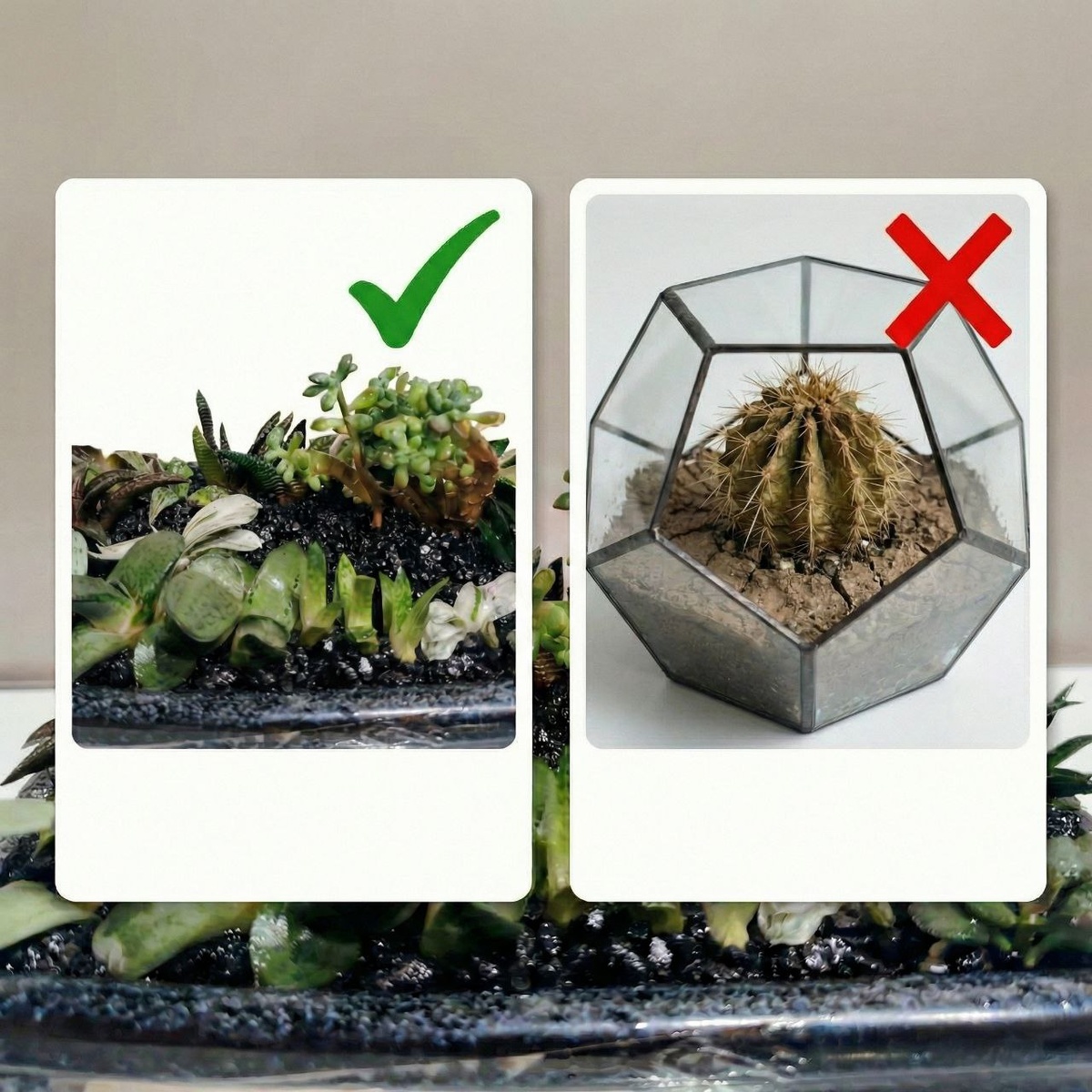 1. Вода без выхода. Даже самый красивый стеклянный сосуд без дренажных отверстий превращается в ловушку. Даже немного избыточный полив, конденсат на стенках или просто медленное испарение приводят к тому, что влага не уходит. Корни суккулентов, лишённые доступа к воздуху в сыром грунте, становятся лёгкой добычей для почвенных микроорганизмов, против которых у