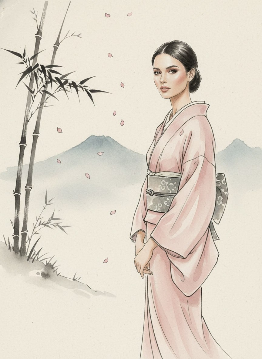 🔥 Превращаем классическую японскую живопись в твой личный арт-объект. Минимум деталей, эстетика ваби-саби и полная безмятежность. Закидывай селфи в @SnapToVideo_bot и примеряй образ из утреннего тумана. ⚡️ Используя загруженное селфи в качестве точного эталона лица со 100-процентным совпадением (--face_fidelity 1.0), создайте фотографию по описанию, сохранив полное сходство с оригиналом. [Вертикальный портрет] женщины в стиле японской живописи суми-э и нежной акварели. Она [стоит в спокойной, созерцательной позе], одета в [минималистичное шёлковое кимоно нежно-розового цвета]. Композиция с использованием негативного пространства: слева изящно тянется [ветка цветущей сакуры], лепестки медленно падают вниз. На фоне [далёкий силуэт горы, тающий в утреннем тумане]. Уверенные мазки тушью, текстура рисовой бумаги. [Мягкий рассеянный свет]. Палитра: нежно-розовый, угольно-чёрный и серо-голубой. Критически важно: никакого текста, букв или надписей. Как менять: 👀 🎯 Ракурс (замени [вертик