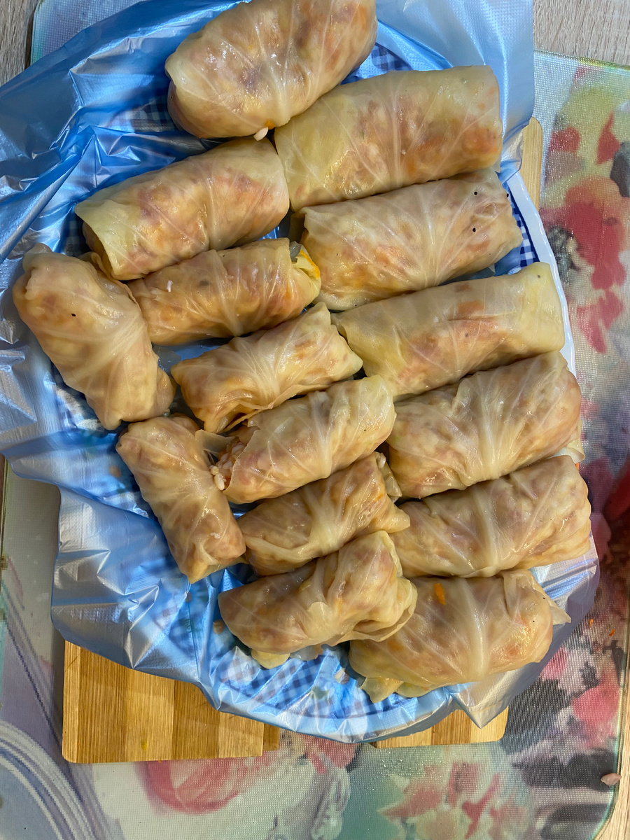С утра как обычно приготовила на завтрак кашу и сварила пару яиц для салата оливье, так как осталось не много варёного картофеля и две сосиски в холодильнике были, огурцы солёные открыла банку , вот и салат получился сытный и вкусный, но им мы уже ужинали.
