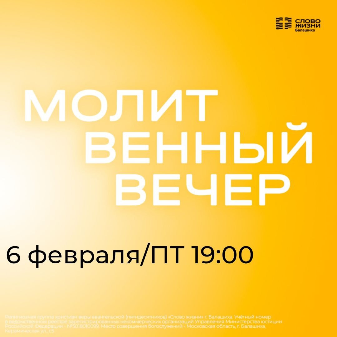 Приглашаем вас завтра, 6 февраля, в 19:00 на молитвенный вечер в церкви!