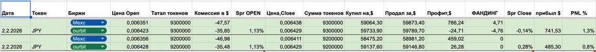Миф или реальность? Да, это правда. Прямо сейчас мы активно отрабатываем токенезированные акции — и именно там сейчас одна из самых интересных ситуаций на рынке. 📊 Токенезированные акции — почему по ним столько спредов? 🔹 Что это такое? Токенезированные акции — это активы, курс которых привязан к фондовому рынку (реальным акциям). Сейчас их очень активно добавляют практически на все крупные биржи. 🔹 В чём их главное преимущество? 1️⃣ Изобилие спредов По этим инструментам в последнее время появляется очень много арбитражных возможностей. На скринах из закрытого сообщества видно, сколько коллов по токенезированным акциям было за пару дней. 2️⃣ Гибкость по объёму Можно заходить на любые суммы, а проценты по сделкам при этом бывают очень приятные. 🔹 Как они отрабатываются? 📌 Точно так же, как и обычные фьючерсные спреды 📈 Реальные примеры 1. Пример заработка одного из клиентов — смотрите по ссылке 2. Отработка по коллу JPY у одного из VIP-клиентов ( на скрине ) Long на бир