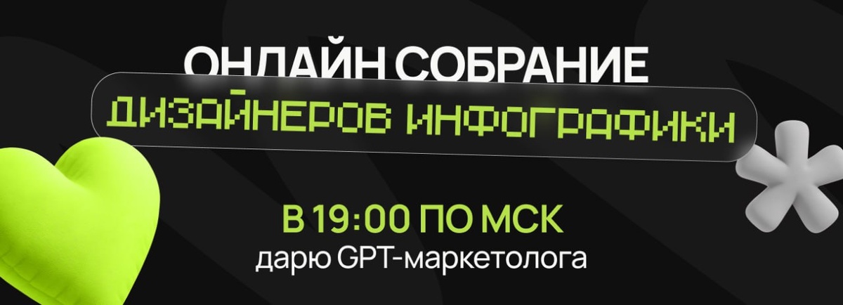 ! Через 10-ть минут состоится общее онлайн собрание всех дизайнеров инфографики, на которое я вас приглашаю ❤️ Всем, кто будет до конца на эфире — подарок обновлённый ассистент - маркетолог в ChatGPT. — сегодня ещё на два дня открываю продажи на конструктору) Можно подключаться ➡️ https://start.bizon365.ru/room/ehoreva/0502