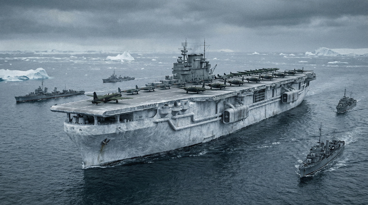 Авианосец, который не тонет, потому что… Его корпус — 12 метров льда с опилками. И да, в него стреляли на конференции союзников, и пуля рикошетом улетела по комнате. Когда пророк Аввакум писал «посмотрите между народами и внимательно вглядитесь, и вы сильно изумитесь, ибо Я сделаю во дни ваши такое дело, которому вы не поверили бы, если бы вам рассказали», он вряд ли представлял, что спустя тысячелетия британские военные выберут его слова эпиграфом для проекта ледяного авианосца. Само название в документах писали то Habakkuk, то Habbakuk — путаница в орфографии стала первым симптомом хаоса, который преследовал эту затею от начала до конца. Зимой 1942 года Атлантика превратилась в кладбище. Немецкие подводные лодки топили конвои в «воздушной дыре» — зоне посреди океана, куда не дотягивалась береговая авиация ни с одного континента. Решение выглядело очевидным: нужна плавучая взлетная полоса. Проблема в том, что сталь шла на танки и обычные корабли, а любой авианосец можно потопить торпе