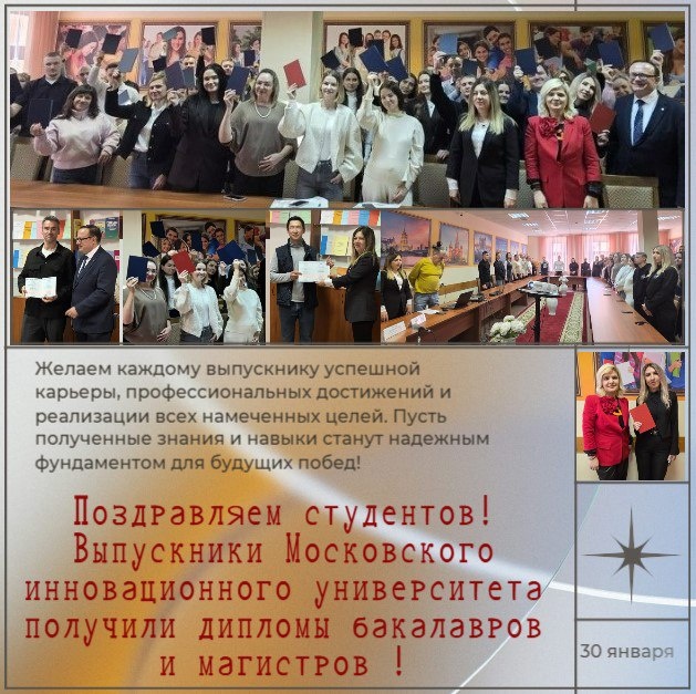 !!! 30 января 2026 года наши выпускники получили дипломы бакалавров и магистров по направлениям подготовки: ⚖️ Юриспруденция 🏛 Государственное и муниципальное управление 📊 Экономика 📈 Менеджмент 💻 Прикладная информатика ✨ Психология 📢 Реклама и связи с общественностью Поздравляем всех с успешным завершением учебы и желаем уверенного старта в профессиональной карьере! Пусть знания и опыт, полученные в университете, станут надежным фундаментом для новых достижений и свершений! #МИУ #Выпуск2026 #Образование #Успех #БудущееНачинаетсяЗдесь