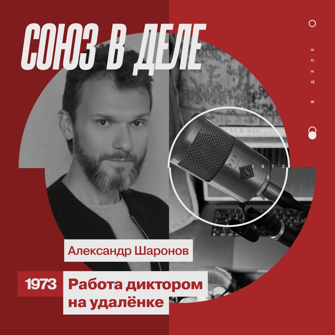 Александр Шаронов — универсальный диктор, бренд-войс телеканалов ТВ3, НСТ, «Мосфильм золотая коллекция» и «Патриот», а также радиостанции NRJ и издательства Бомбора. Александр Шаронов — один из пионеров удалённой работы диктором на постсоветском пространстве. Он начал свой путь ещё в конце 1990-х, когда интернет только развивался. Уже в середине 2000-х, Александр создал одну из первых домашних студий для записи голоса в Москве, включая собственную дикторскую кабину. "Мне удалось переломить недоверие к такой работе, и в итоге я уже, по-моему, в 2010 году полностью перешёл на удалёнку", — вспоминает он. "Если вы хотите честно смотреть в глаза своим заказчикам, у вас должен быть хороший микрофон", — уверен Александр Шаронов. За годы своей работы диктор перепробовал устройства самых разных брендов, но в итоге остановился на микрофонах СОЮЗ. "Бесспорно, СОЮЗ — марка дорогая, но каждый их микрофон абсолютно точно стоит своих денег. Качество звука, которое они показывают, — главное их преимущ