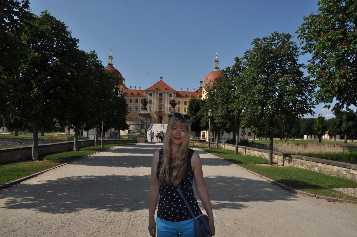 С детства обожаю сказку "Три орешка для Золушки". Милые персонажи, волшебная атмосфера, сказочная музыка просто очаровательны.. И так приятно пересматривать эту сказку в новогодние праздники. Снежный лес, зимняя дорога, вечерний замок в свете фонарей создают уютную и волшебную атмосферу. На душе светлая радость и вериться, что чудеса всё-таки случаются. И одно из таких чудес произошло! Да. у меня в детстве была мечта - увидеть тот самый замок из сказки. Но тогда мне казалось, что она не осуществима. И он для меня остался как бы в другом пространстве, сказочном. Поэтому специально не искала. Мечта она на то и мечта, а уж если исполняется, то обязательно чудесным и неожиданным образом. Как-то путешествуя по восточной Германии, мы заехали в Дрезден. Поселившись в гостинице, набрала разных путеводителей, и сидя в номере на балконе, пила чай с местными пирожными и изучала новые маршруты. И вдруг, на одной из страниц, увидела что-то знакомое. Замок Морицбург. Где я его могла видеть если