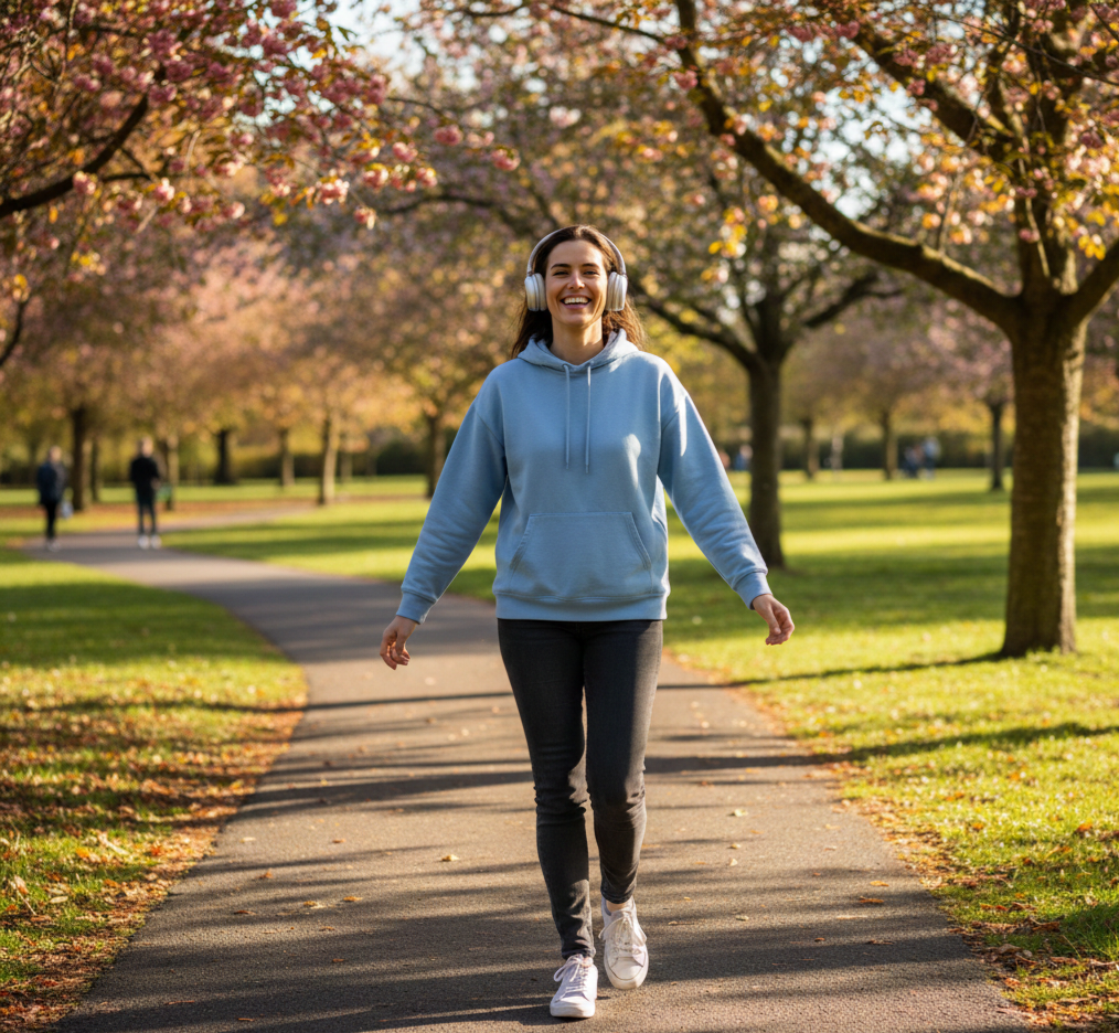 Если вы идете, уткнувшись в телефон — вы не гуляете, вы работаете. Уберите смартфон в карман. Включите в наушниках хорошую аудиокнигу или подкаст. Когда ваши руки свободно двигаются в такт шагам, всё тело расслабляется, а дыхание становится глубже.