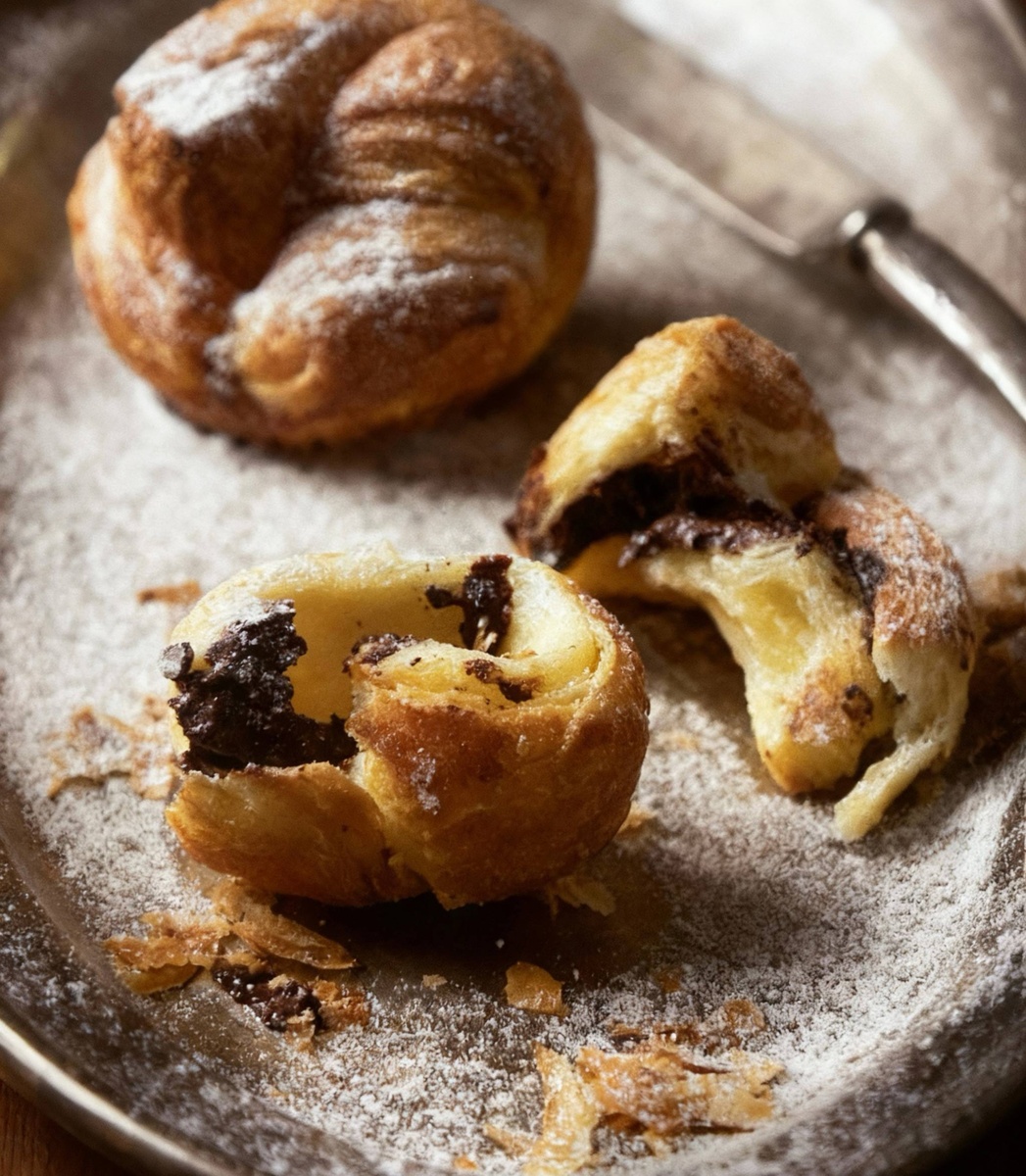 Молоко с сахаром и медом разогреть на огне. В деже замесить муку, дрожжи, сливочное масло (200 г), соль, добавить теплое молоко, вымесить до однородной текстуры. Убрать в холодильник на 1 час. Прослоить тесто маслом три раза по три слоя, убирая каждый раз в холодильник на 15 минут. Раскатать тесто, сформовать круглые круассаны, выложить на противень, покрыть льезоном и расстаивать 2 часа. Выпекать при температуре 170°С в течение 15 минут.