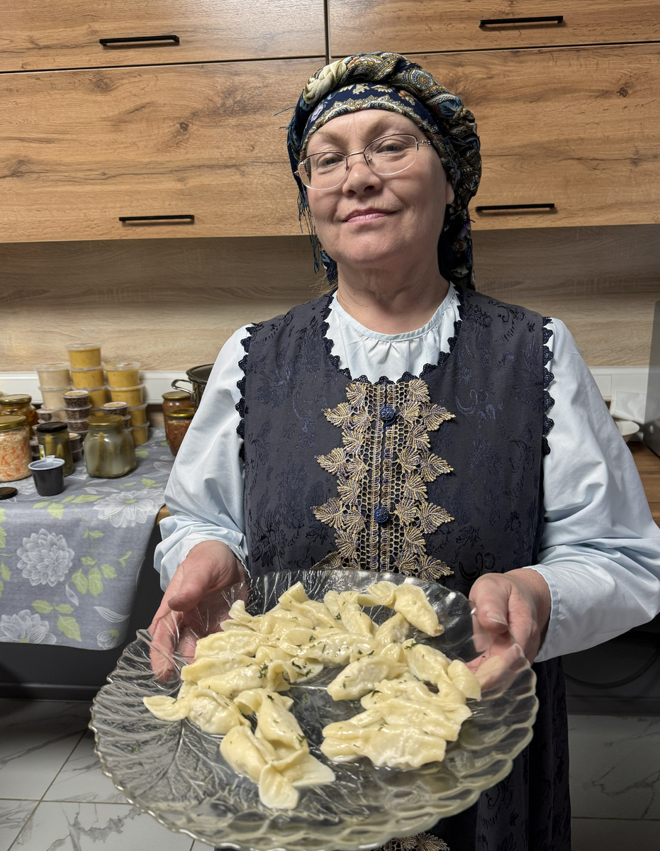 Кто бы что не говорил, но мы пельмени считаем фаворитом уральской кухни. Пельмени из лосятины, картофельные со шкварками, пельмени с грибами, пельмени из щуки, вареники клубника с творогом, пельмени из говядины с капустой и каких только начинок не встретишь. А в «ЛадоЯре», кроме всего вышеперечисленного нас угостили «светофориками», разноцветными пельменями. Было весело, но цвет не изменил вкусовые качества мясных пельменей. Гостеприимные хозяйки пельмени из щуки со свининой готовят в виде рыбки. Секретом, правда, не поделились, как это у них так похоже получается. Поговорим про уральскую кухню, какими блюдами еще угощают в ЛадоЯре. Демидовские щипки с лосятиной. Это как суп с клецками на хорошем мясном бульоне. Раньше его варили без картошки и ели в походах. Почему Щипки? – потому что тесто, которое добавлено в мясной бульон отщипывалось маленькими кусочками. Кстати, это любимое блюдо Акинфия Демидова. Солоделики, это пирожки из ржаной муки с вялеными ягодами. Очень сложны в приготовл