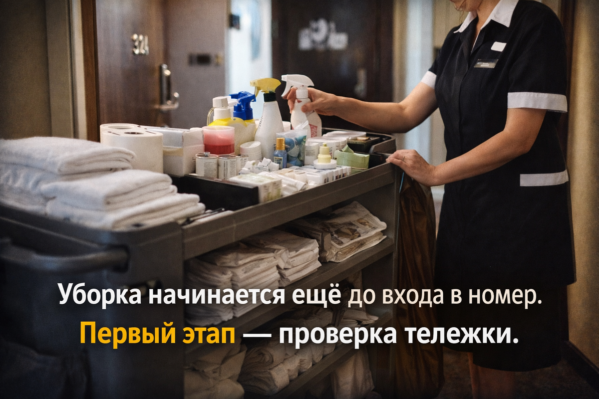 А как убирают в отеле по наитию или про правилам? А вот сейчас и узнаем. В профессиональных отелях по всему миру используется система, которую внутри называют «21 шаг». Именно она определяет, будет ли номер действительно чистым — или только на первый взгляд. Если чего-то не хватает: номер уже не может быть убран полноценно. В слабых отелях этот этап часто игнорируют — и дальше начинаются "мелкие недочёты", которые туристам потом совсем не "мелкими" кажутся. Если нет — порядок всегда один и тот же: Это не формальность. Это вопрос безопасности и контроля. Сантехника — первой, а не последней. Один из самых важных моментов, о котором не всегда знают. Сразу после входа в номер: заливаются дезинфицирующие средства.