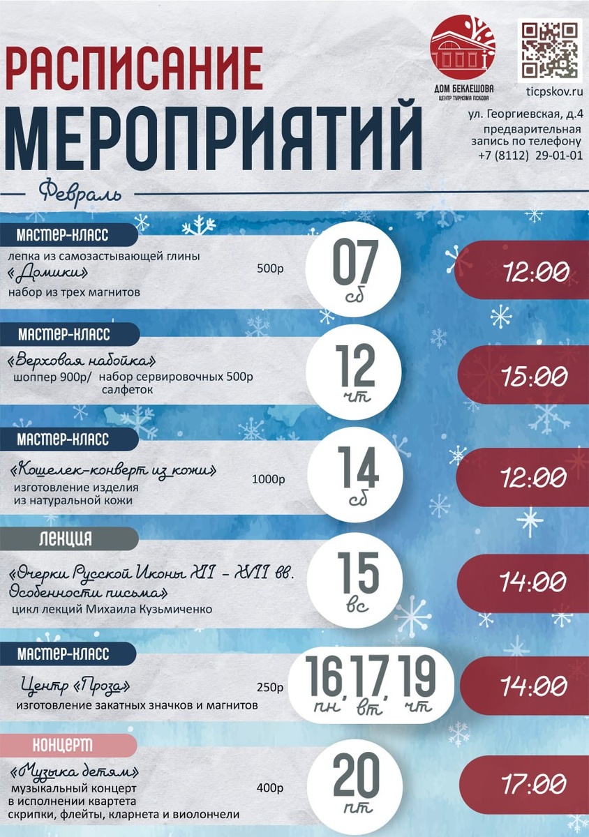 Расписание Центра туризма и творческих индустрий Пскова на февраль ❄️
