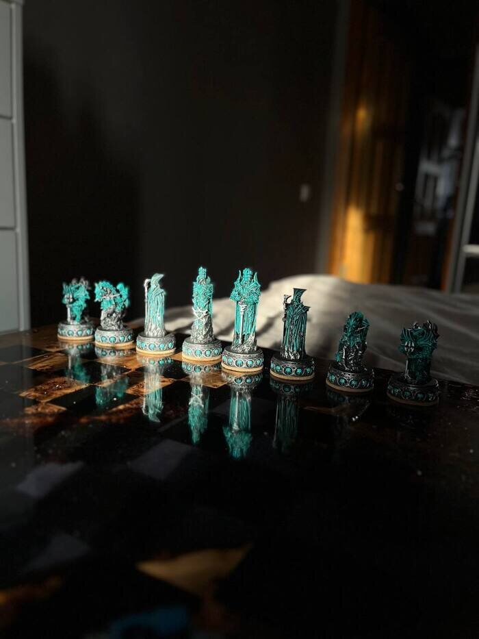 Слишком много внимания уделили доске. Переходим плавно к фигуркам. Изначально должны были использовать простые фигурки. Много красивых молдов продается на просторах интернета. Планировал залить или смолой или литьевым мрамором. Но не было тех форм, которые были по душе. В этот момент проскользнула мысль напечатать фигурки на 3Д принтере, которого у меня нет))) Заказал принтер. Наверное, как и название эпоксидки, как и название смолы для принтера писать нельзя. Кароч, заказал фотополимерный принтер на мой взгляд самый безгеморойный и неприхотливый. Смотрел сначала на авито, но быстро понял, что разница в цене с новым маленькая. Т.к. на одном известном китайском сайте этот принтер часто продается по акции, со скидкой. И даже можно посмотреть когда будет эта акция. Так вот по акции он был дешевле большинства предложений с авито. Конкретно в моем городе предложения с авито были дороже примерно на 1-5к. В других городах дешевле на 1-3к. Видимо люди не мониторят цены нового. С других городов брать рискованно, возможно брак, поломка и доставка. Взял с китайского сайта. Пришел меньше чем через неделю. Вышел в 34к.