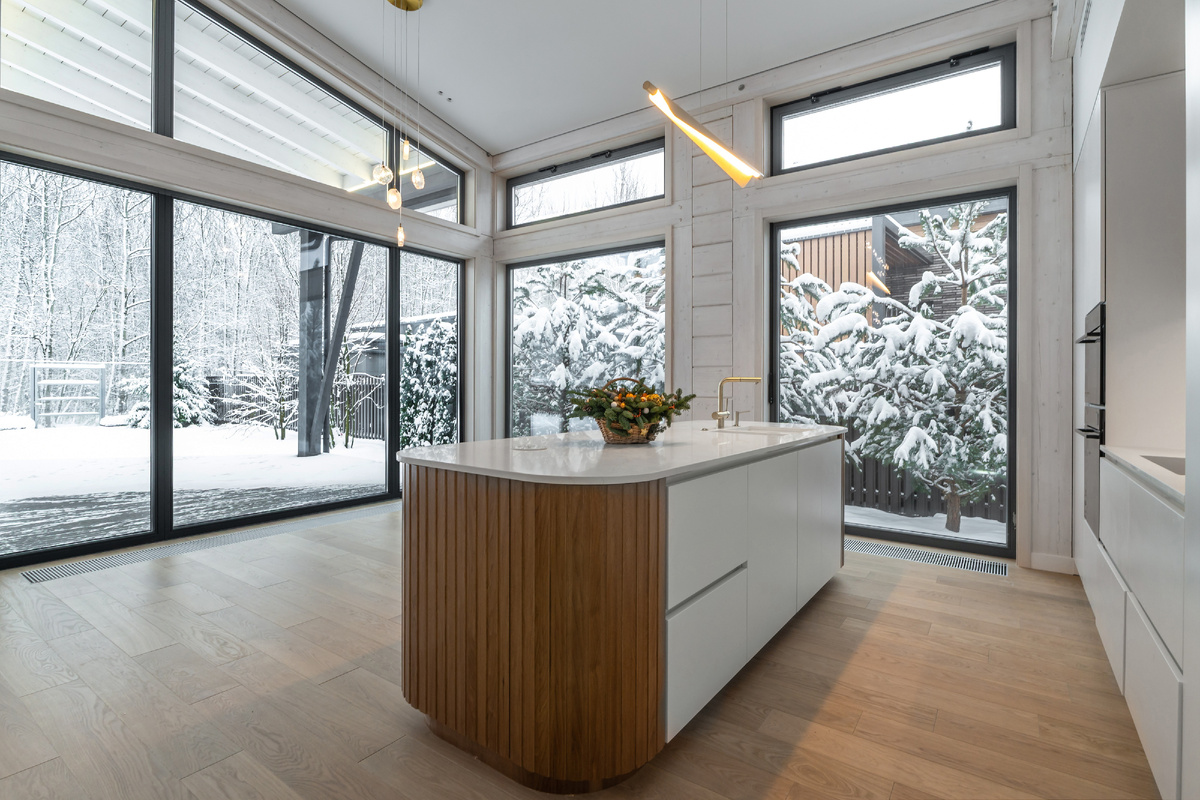 В фокусе сегодня два дома для постоянного проживания в зоне 20 км от МКАД по Новой Риге. Оба - с панорамными окнами, вторым светом в кухне-столовой-гостиной и глубокой функциональной террасой. 1. MILLENIUM PARK 500 кв.м / 4 спальни / 12 соток / с отделкой