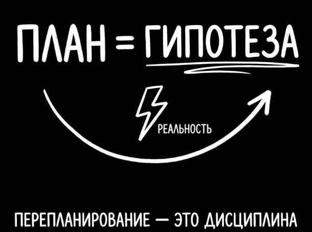 Даже если ты выбрал правильный ход, реальность все равно внесет правки. И вот тут у меня была третья старая ошибка: считать перепланирование провалом. Типа "мы же договорились". Типа "нельзя менять курс". А потом менялся рынок, менялась технология, менялся контекст клиента - и мы ехали в стену по расписанию. Сейчас я считаю план гипотезой. Он нужен не чтобы быть правым. Он нужен чтобы раньше увидеть, где ты ошибся. Мой ритм простой: - раз в неделю сверка по вехам. - что сделали. - что изменилось во входных данных. - что это меняет в плане. И самое важное - обсудить обновление, чтобы не было "тишины и догадок". Перепланирование - это дисциплина в турбулентности, а не слабость 🫡 --- Канал: 🧠 Второй Мозг
