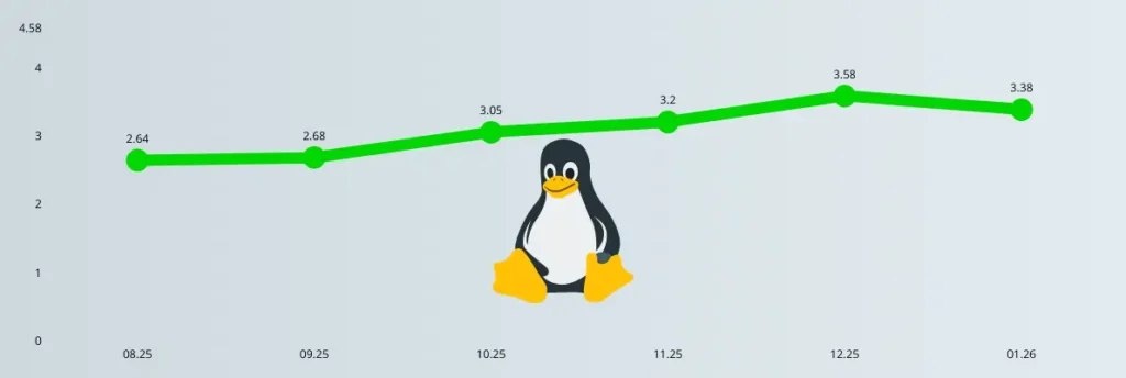 #linux #статистика #Новости В январе 2026 года доля Linux на Steam немного сдала позиции — 3,28 %, после рекордных 3,58 % в декабре. Падение есть, но цифра всё равно впечатляет: по сравнению с 2016 годом, когда Linux едва дотягивал до 1 %, это почти скачок в стратосферу. Подробнее: https://www.gamebuntu.ru/news/otchet-steam-za-yanvar-2026/ Игры в Linux @linuxgamer #linuxgames #игрывлинукс