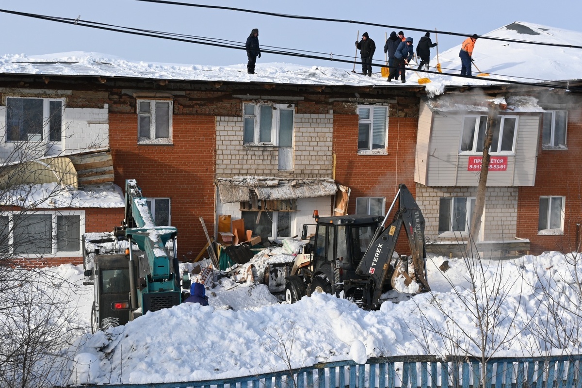 В селе Кушнаренково сотрудники ЖКХ приступили к разбору обрушившейся части жилой двухэтажки. Рабочие счищают снег с кровли, демонтируют свисающие элементы карниза и сортируют остатки покрытия крыши. Уцелевшие части потом используют при восстановительных работах. Это позволит сэкономить ресурсы и минимизировать расходы на восстановление, сообщил глава районной администрации Марат Латыпов. Напомним, крыша многоквартирного дома на улице Горной обрушилась накануне ночью. В результате повреждена газовая труба, газоснабжение оперативно отключили, также прекратили подачу электроэнергии. Погибших и пострадавших нет. Жителей эвакуировали и временно разместили на базе местного лагеря. После ЧП в районе ввели режим чрезвычайной ситуации. Мера позволит районным властям оперативно решать возникающие вопросы, а экстренные службы смогут в круглосуточном режиме выполнять работу по ликвидации угроз. Квартиры опечатали, на месте дежурят полицейские.
