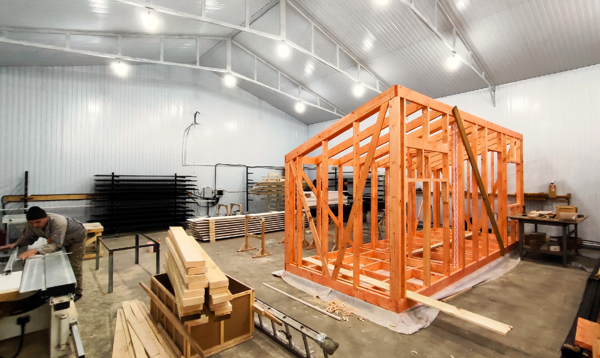 - все материалы хранятся в закрытом тёплом цехе — утеплитель не намокает, древесина не «ловит» влагу;