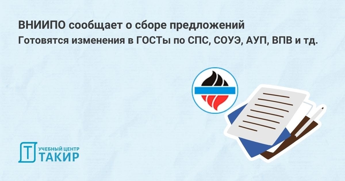 Готовятся изменения в ГОСТы по СПС, СОУЭ, АУП, ВПВ и тд. ВНИИПО сообщает о сборе предложений ВНИИПО МЧС России приступил к работе по масштабному обновлению национальных стандартов в рамках утвержденной Росстандартом Программы национальной стандартизации на 2026 год (ПНС-2026). В перечень документов, планируемых к изменению, входят: ➡️ Изменение № 2 к ГОСТ Р 59636-2021 на автоматические установки пожаротушения. ➡️ Изменение № 2 к ГОСТ Р 59638-2021 на системы пожарной сигнализации. ➡️ Изменение № 2 к ГОСТ Р 59639-2021 на системы оповещения и управления эвакуацией. ➡️ Изменение № 2 к ГОСТ Р 59640-2021 на противопожарные занавесы. ➡️ Изменение № 2 к ГОСТ Р 59643-2021 на внутреннее противопожарное водоснабжение. ➡️ Изменение № 1 к ГОСТ Р 71554-2024 на системы передачи извещений о пожаре. ➡️ Изменение № 1 к ГОСТ Р 53254-2009 на наружные пожарные лестницы и ограждения кровли. ➡️ Изменение № 2 к ГОСТ Р 59643-2021 на первичные средства пожаротушения. ➡️ Изменение № 1 к ГОСТ Р 53296-2009 на
