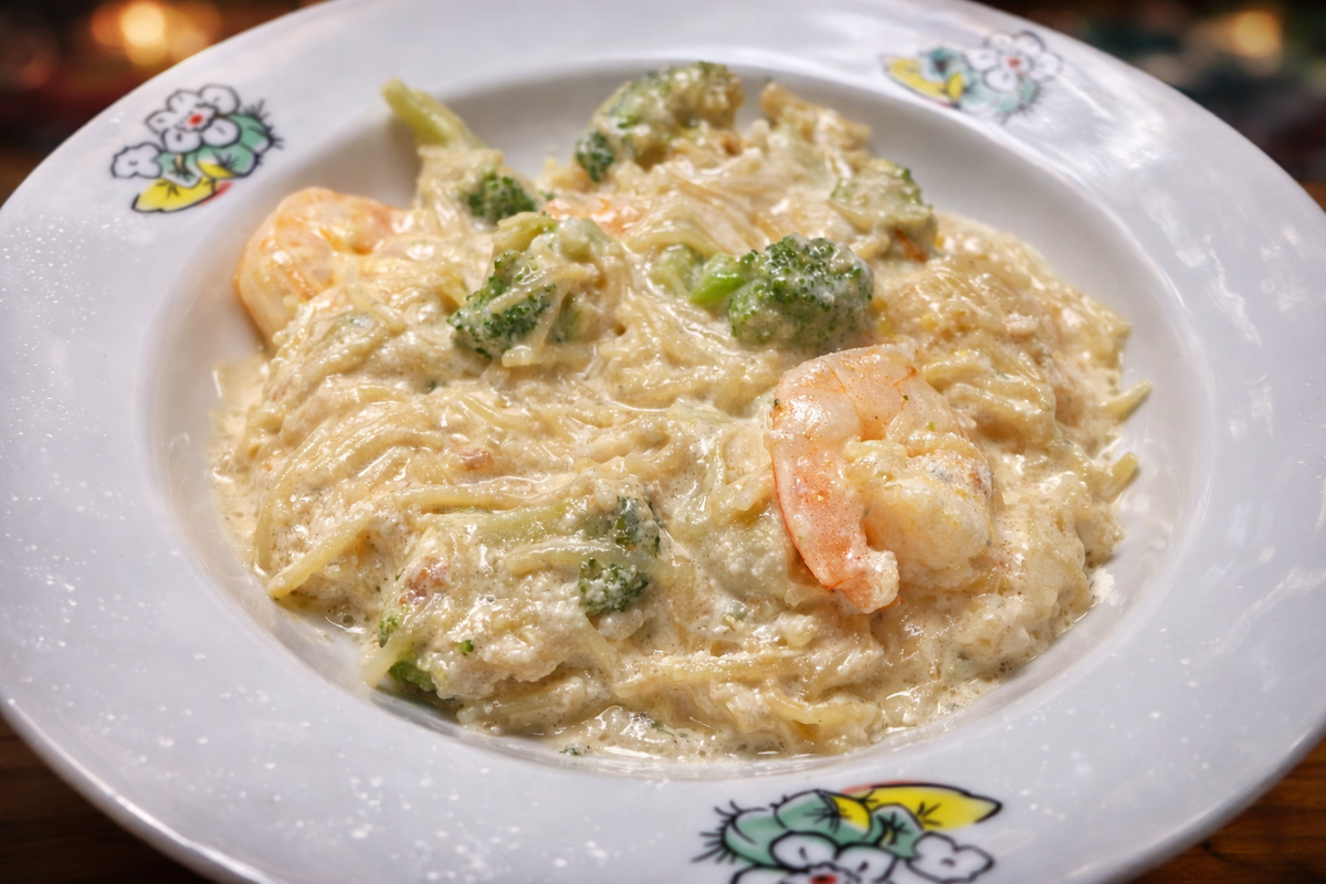 Этот рецепт — спасение для тех, кто ценит время, но не готов жертвовать вкусом. Мы используем всего одну сковороду, чтобы приготовить полноценное блюдо: углеводы (макароны), белок (креветки и яйцо), витамины (брокколи) и нежнейший сливочно-сырный соус. Идеально для детского ужина или быстрого взрослого обеда. Как обычно, я за практичность и поэтому готовить будем в одной сковороде. Для начала высыпаем паутинку на сковороду, немного обжариваем и заливаем кипятком, варим до готовности. Пока они варятся, делаем соус из молока, соли, яичного желтка, тертого сыра и растопленного сливочного масла. Всё смешиваем и слегка взбиваем. По готовности макарон, выкладываем их на тарелку. Брокколи предварительно заливаем кипятком и оставляем минут на 10. В эту же сковороду на капле масла обжариваем креветки и брокколи. Подсаливаем. По готовности креветок и брокколи, заливаем соусом и добавляем вареные макарошки. Тушим до загустения соуса. Всё, готово, можно подавать! Приятного аппетита! Надеюсь, это