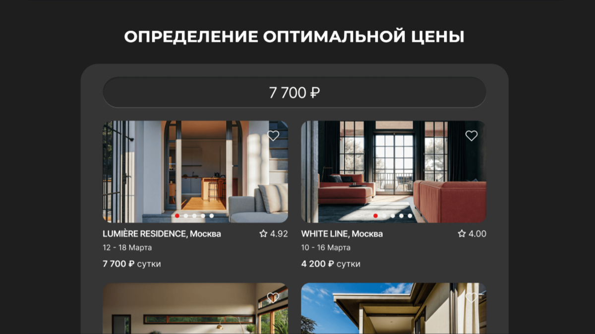 Повысить эффективность монетизации объектов размещения за счёт автоматического подбора цены, напрямую влияющей на спрос.