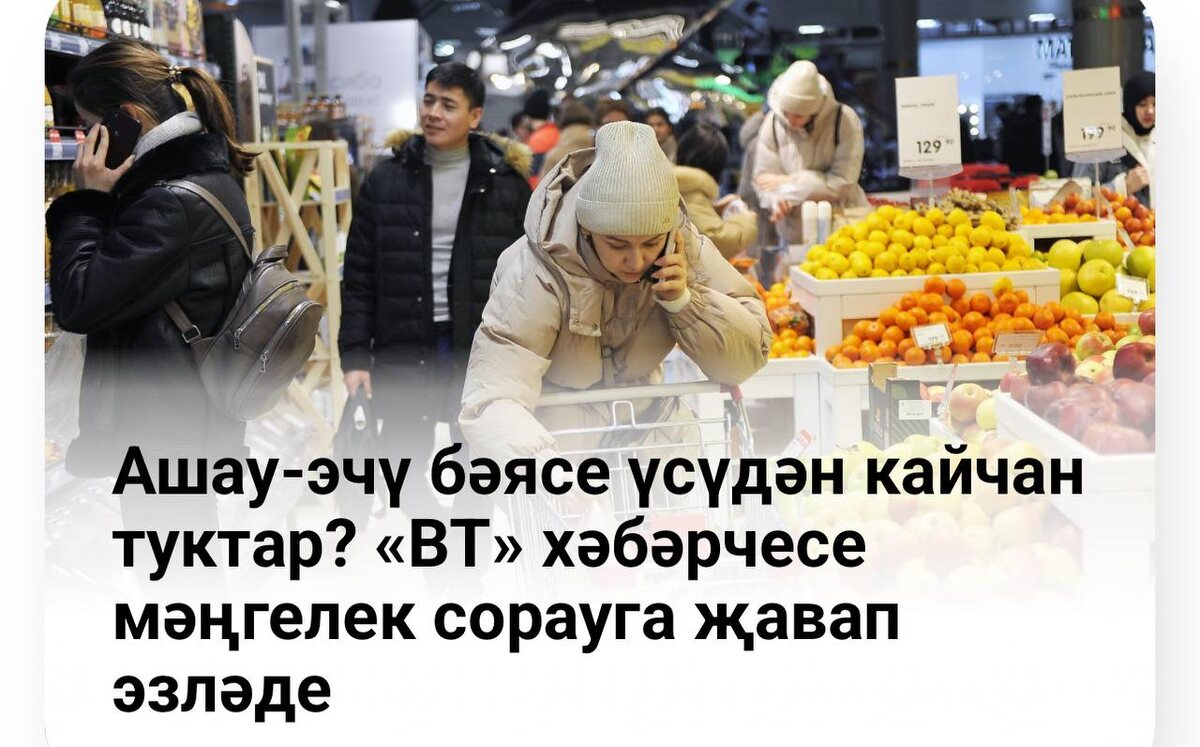 Шәһәрдә яки авылда яшәүгә карап, чыгымнар аерыла, әлбәттә. Ничек кенә булмасын, тамак кайгысы кемдә дә бар. Аппетит та ашаган вакытта уяна. Узган айда ил күләмендә дүрт кешелек гаиләнең азык-төлек һәм төп кирәк-яракларга киткән уртача айлык чыгымнары 51 мең сумнан артып киткән әнә. Эшли торабыз, акча бетә тора. Кая китә ул? «ВТ» хәбәрчесе мәңгелек сорауга җавап эзләде 👇🏻 https://vatantat.ru/news/asau-ecu-baiase-usudan-kaican-tuktar-vt-xabarcese-mangelek-sorauga-avap-ezlade-112015