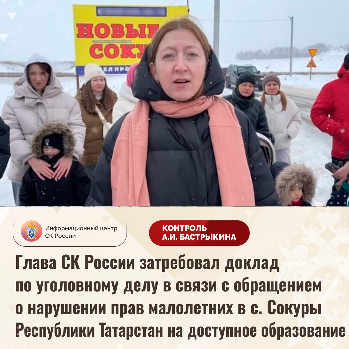 Глава СК России затребовал доклад по уголовному делу в связи с обращением о нарушении прав малолетних в с. Сокуры Республики Татарстан на доступное образование К Председателю СК России А.И. Бастрыкину через Информационный центр поступило обращение по вопросу нарушения прав малолетних в селе Сокуры Республики Татарстан на доступное образование. Несмотря на активную застройку территории с 2021 года и значительное увеличение количества детей, проживающих в населенном пункте, в коттеджном поселке функционирует только одно государственное дошкольное учреждение. В связи с этим граждане вынуждены на протяжении нескольких лет ожидать очереди для зачисления малолетних в детский сад либо доставлять их в учреждения в других населенных пунктах, расположенных на значительном расстоянии от места проживания. При этом в селе имеется два частных детских сада, посещение которых финансово затруднительно для семей. Обращения в различные инстанции результатов не принесли. Указанная ситуация освещалась в С