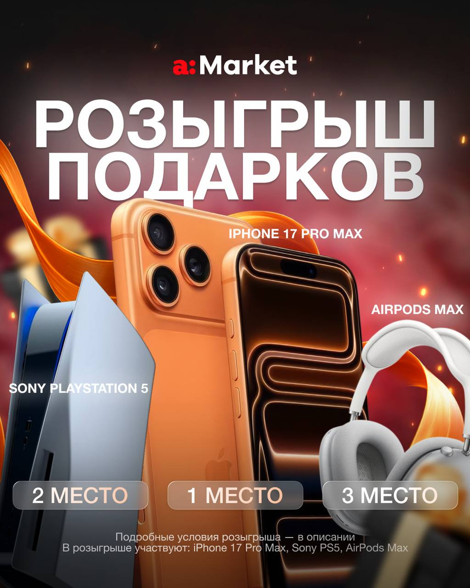 *️⃣ Крутейший розыгрыш техники от магазина a:Market , о которой мечтают все: • 1 место — iPhone 17 Pro Max Orange (Сим+Есим/256gb) • 2 место — PlayStation 5 • 3 место — AirPods Max → Тебе нужно только подписаться на магазин https://t.me/+Q4XjkES6q7E0NzY6 a:Market и нажать «участвовать». Все подробности участия в закрепе. https://t.me/+Q4XjkES6q7E0NzY6 Итоги подведём: 10.02.2026 🎁 Победителей выберет бот случайным образом Каждый приглашенный участник увеличивает твои шансы на победу! Реклама ИП Александров Никита Дмитриевич ИНН: 027415308246 erid:2Vtzqwy5XyM