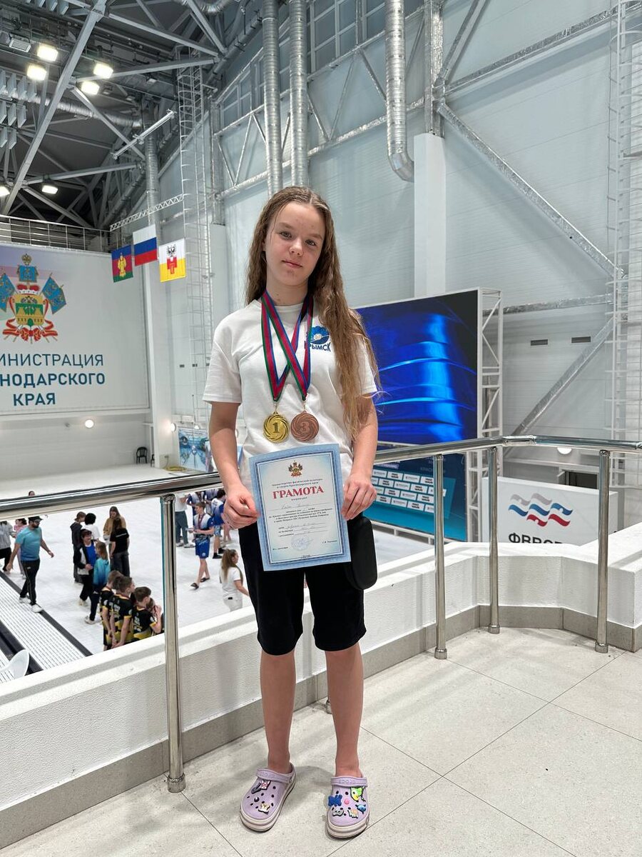 серебряного и бронзового призера Олимпийских игр 1976 года в городе Монреале заслуженного мастера спорта Любови Петровны Русановой. Свыше 500 спортсменов из 44 физкультурно-спортивных организаций Краснодарского края боролись за награды, и в их числе 6 пловчих отделения плавания спортивной школы «Крымская». По итогу соревнований Полина Бабак завоевала три медали: 🥇 золото на дистанции 50 м вольным стилем 🥉 бронза на 50 м на спине 🥉 бронза на 100 м вольным стилем Спортсменку подготовил тренер-преподаватель Андрей Валентинович Голиченко. 🎉 Поздравляем нашу спортсменку и желаем ей новых побед!