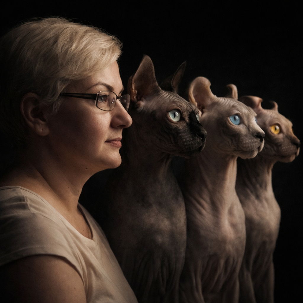 Мытье сфинксов — это искусство. Если вы думаете, что мыть их — это просто, попробуйте помыть скользкий, извивающийся кусок сырого теста. Людвиг в воде принимает вид мученика, распятого на кафеле. Олаф орет так, будто его не моют гипоаллергенным шампунем, а приносят в жертву ацтекским богам.