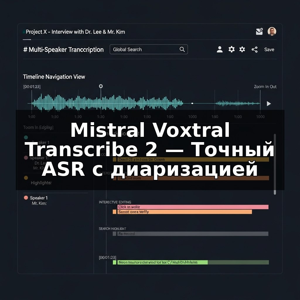 Mistral Voxtral Transcribe 2 — Точный ASR с диаризацией Задача: Расшифровать 40-минутный митап с тремя спикерами и вытащить структурированный лог для документации. Решение: Использовал Voxtral Transcribe 2 от Mistral. Инструмент порадовал пакетной диаризацией (распознаванием голосов). Весь процесс занял около 3 минут. В отличие от сырых ASR-моделей, эта четко разделяет реплики, даже если люди говорят одновременно. Технический сленг и переключение между русским и английским языками отработали без ошибок. Вердикт: Идеально для автоматизации протоколов встреч и создания субтитров. Быстро, точно и готово к нагруженному продакшену. #MistralAI #ASR #DevTools 🔗 Опробуй мощную транскрибацию в деле 👉 Мировые новости простым языком 👉 Читаешь новости? Ассистенты с Gemini 3 в подарок