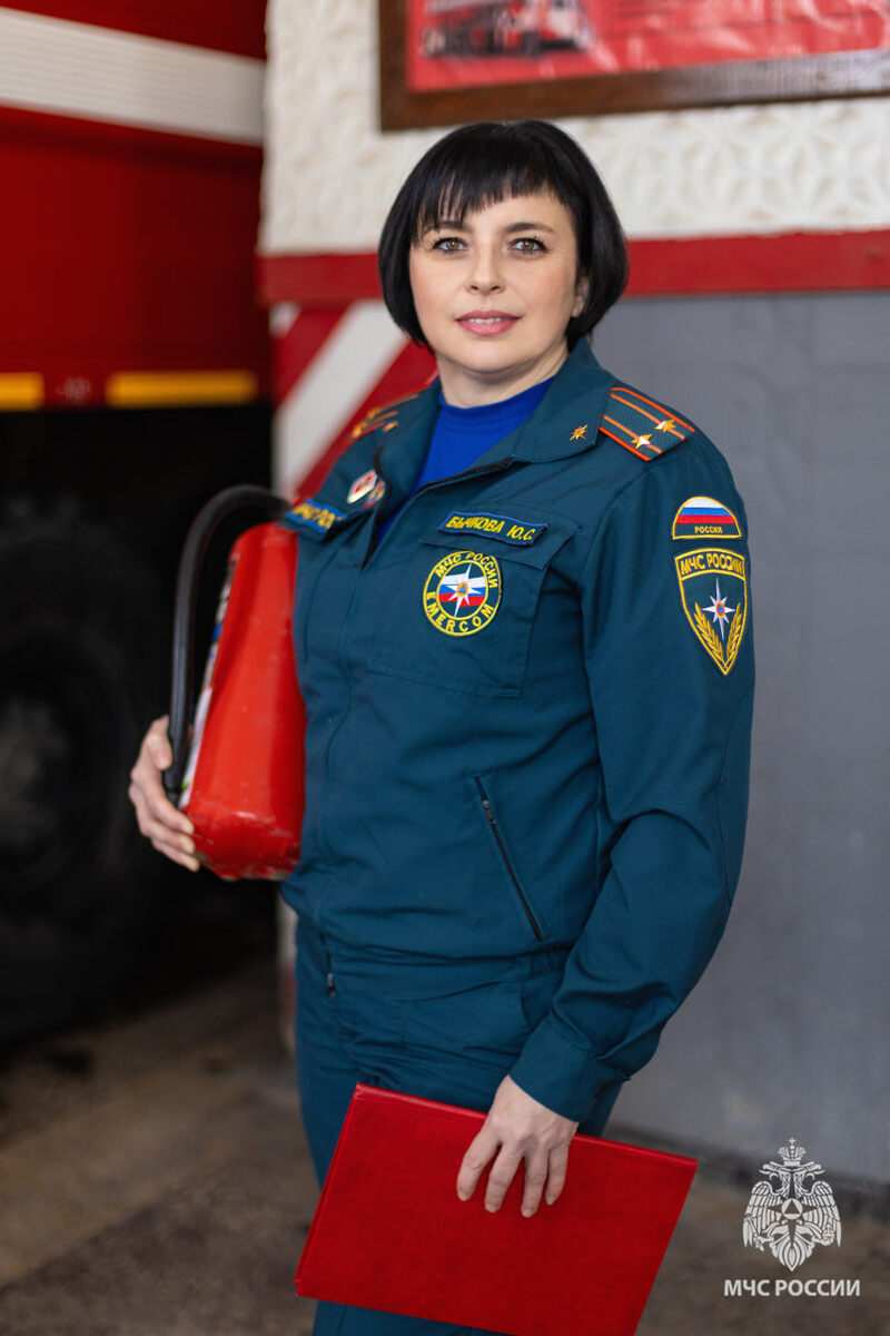 Начальник отдела надзорной деятельности и профилактической работы по Артемовскому району г. Луганска ГУ МЧС России по ЛНР подполковник внутренней службы Юлия Сергеевна Бычкова уже 22 года занимается одним важным делом - предотвращает пожары и другие чрезвычайные ситуации. Работа эта по своей многозадачности, необходимости в широком круге знаний, использованию всех внутренних резервов сложна даже для мужчин, но Юлия не согласилась бы ни на какую другую. А все началось с отца, который отдал пожарно-спасательной службе 25 лет, с его формы с золотыми звездочками, с его рассказов о работе, с его преданности своему делу. Однако, чтобы стать дипломированным специалистом в сфере МЧС, девушке после окончания школы потребовалась вся ее целеустремленность, настойчивость и решимость: «Тогда ни в один профильный вуз Украины девушек на очное обучение не принимали, а чтобы работать в службе 101, требовалось техническое образование, и я сначала отучилась 5 лет на автотранспортном факультетов местном у