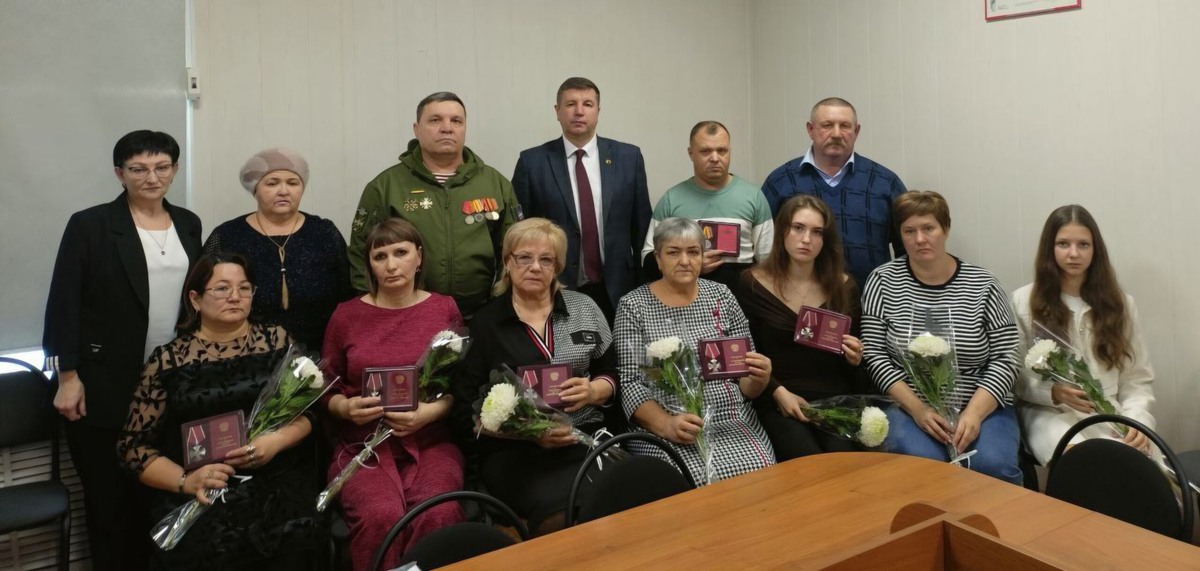 Глава Курманаевского района Василий Саулин вручил семьям погибших военнослужащих СВО госнаграды. Шесть оренбуржцев были награждены Указом Президента РФ посмертно орденами Мужества, а родственникам еще одного бойца передали медаль «Участнику специальной военной операции». На встрече глава района отметил, что память о земляках-героях должна жить вечно: воины уже вошли в историю своим героизмом. Напомним, в январе госнаграды посмертно были переданы павшим в бою рядовым из Соль-Илецкого округа Олегу Гарину, Евгению Байбакову и Борису Васильеву. Чуть ранее орден Мужества вручили супруге бойца Ивана Лазарева из Сакмарского района, в Бузулукском районе в начале года семья погибшего участника СВО Сергея Бережнякова получила медаль «Жукова». Фото администрации Курманаевского района