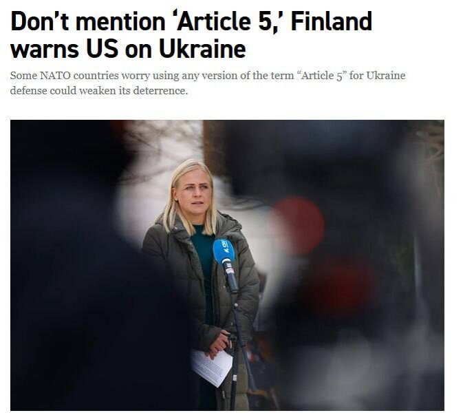 Финляндия призвала США не предоставлять Украине гарантии безопасности, «аналогичные статье 5 НАТО», — Politico