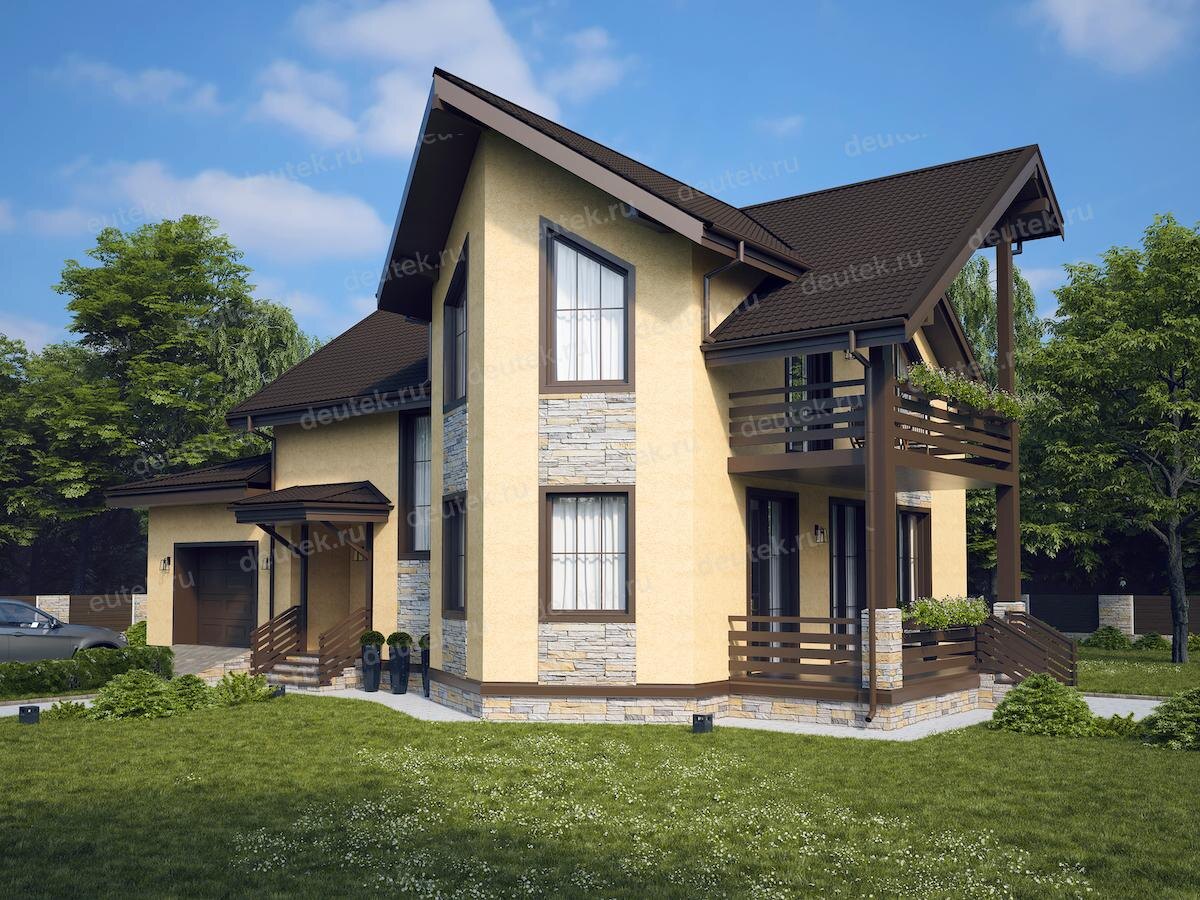 Проект дома с мансардой из газобетона с гаражом - DTE18