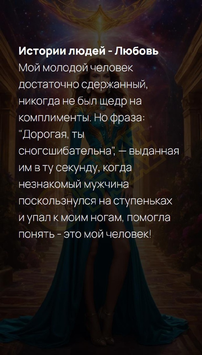 Истории людей - Любовь Мой молодой человек достаточно сдержанный, никогда не был щедр на комплименты. Но фраза: "Дорогая, ты сногсшибательна", — выданная им в ту секунду, когда незнакомый мужчина поскользнулся на ступеньках и упал к моим ногам, помогла понять - это мой человек! #сердечность #случайизжизни #актуально #история #профессионализм #радость #добротавовсем #случайвметро #жизненно #сердечность #случайизжизни #актуально #история #профессионализм #радость #добротавовсем #случайвметро #жизненно расшифруйте свой уникальный код | расшифруйте свой уникальный код | расшифруйте свой уникальный код T | VK | Pin | YouTub | Dzen Истории людей - Любовь Мой молодой человек достаточно сд… #5число #5февраля