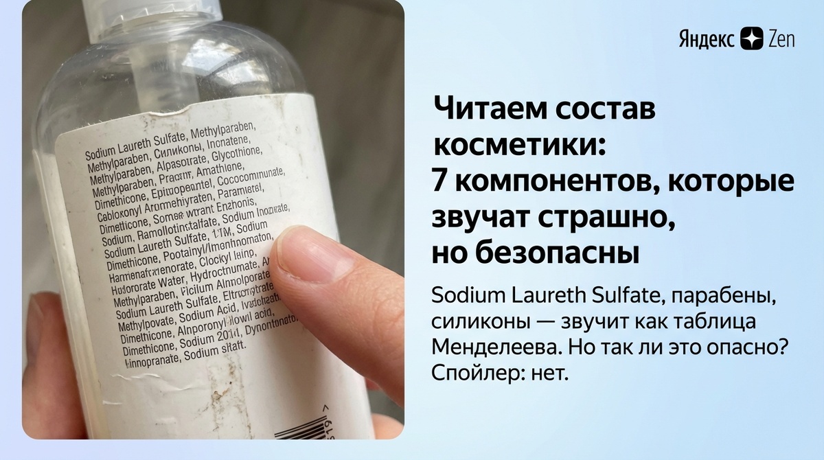 Sodium Laureth Sulfate, парабены, силиконы — звучит как таблица Менделеева. Но так ли это опасно? Спойлер: нет. Маркетинг «чистой» косметики приучил нас бояться длинных названий. Если не можешь произнести — не мажь на лицо. Но это не работает. Мы производим косметику и знаем составы изнутри. Рассказываем, чего бояться не стоит. 1. Парабены Консерванты, которые защищают продукт от бактерий и плесени. Исследования показали: в разрешённых концентрациях абсолютно безопасны. Без консервантов крем испортится за неделю — вот это реально опасно. 2. Силиконы (диметикон, циклопентасилоксан) Не забивают поры, не накапливаются в коже. Делают текстуру шелковистой и создают защитный барьер. Легко смываются обычным гелем. 3. Минеральное масло Продукт нефтепереработки — звучит пугающе. На деле — один из самых изученных и безопасных ингредиентов. Не комедогенен в косметическом качестве. 4. SLS и SLES (сульфаты) Да, могут подсушивать при частом использовании. Но не канцерогенны и не токсичны. Для жирной