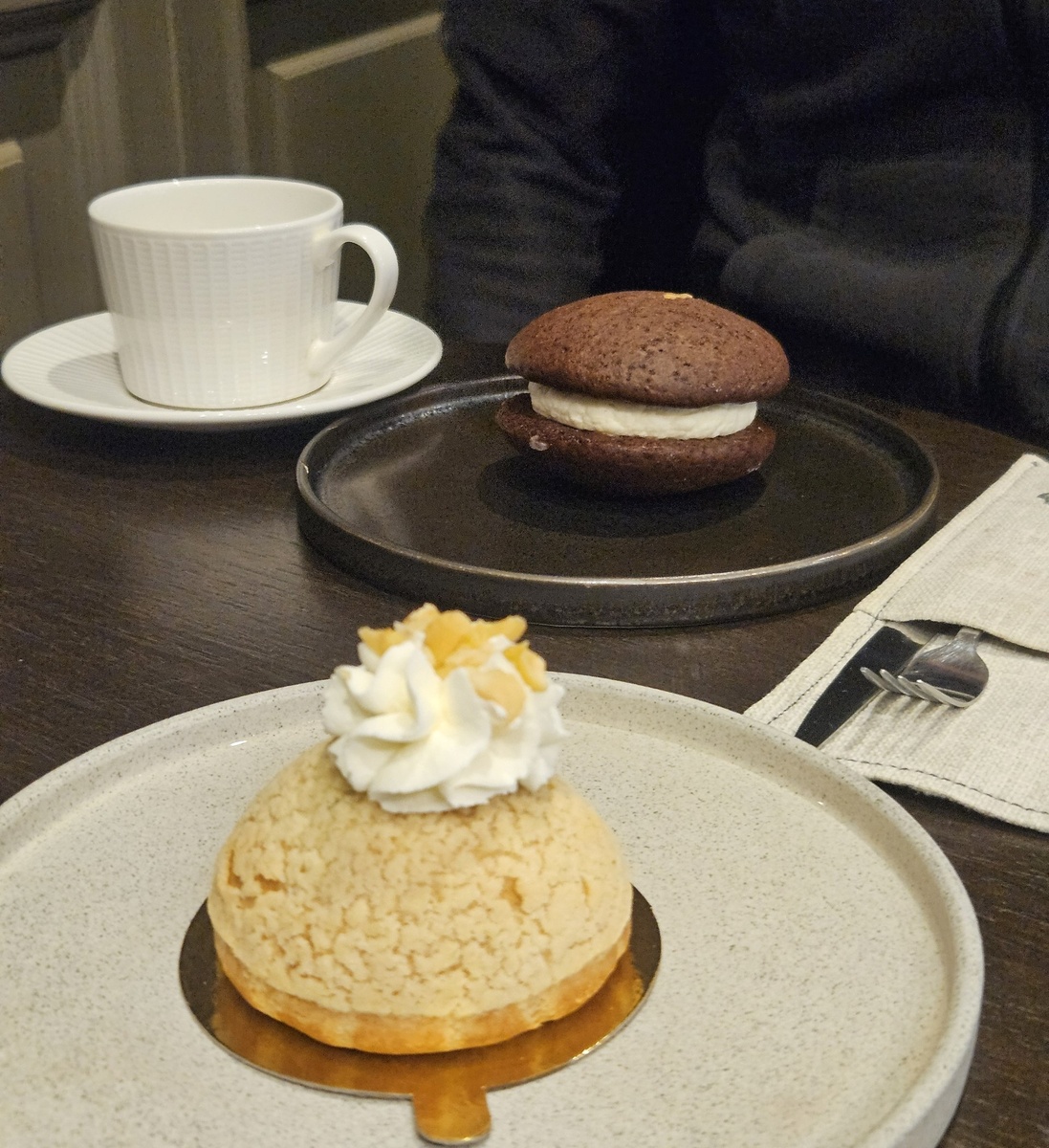 Приехали мы с мужем в новое заведение, зашли. Что ж, претензий нет, презентабельно. Все красиво украшено и витрина со сладостями соблазнительно на нас смотрит. Правда помещение оказалось маленькое, а выбор перекусов скудный. Мало как перекусов, так и напитков.