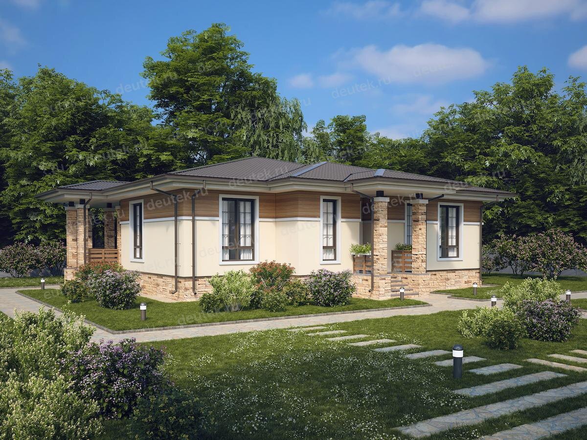 Номер проекта: DTE-19 Разделы проекта: Архитектурный и Конструктивный разделы Заказать проект можно на сайте deutek.ru или по телефону +7 (495) 175-30-40 Другие проекты можете посмотреть в этом разделе https://zen.yandex.ru/proektirovaniedomov Проект одноэтажного дома на одну семью. В нем отсутствие второго яруса компенсировано интересным внешним дизайном, а также достаточной площадью (176 м2), позволившей спроектировать три комфортные спальни, гостиную, кухню-столовую и просторную крытую террасу. Проживать в доме могут 4-6 человек. Во входной части дома находится тамбур с гардеробным шкафом и хозяйственные помещения: котельная с входом с крыльца (в ней, кроме котла, планируется установка стиральной машины) и компактный санузел. Спальни размешены вдоль задней стены, а на главный двор выходят дневные помещения — гостиная и кухня-столовая. Обе комнаты имеют выходы на угловую террасу. В кухне-столовой угловая рабочая зона с мойкой у окна, отдельная плита у стены и удобная практичная кладо