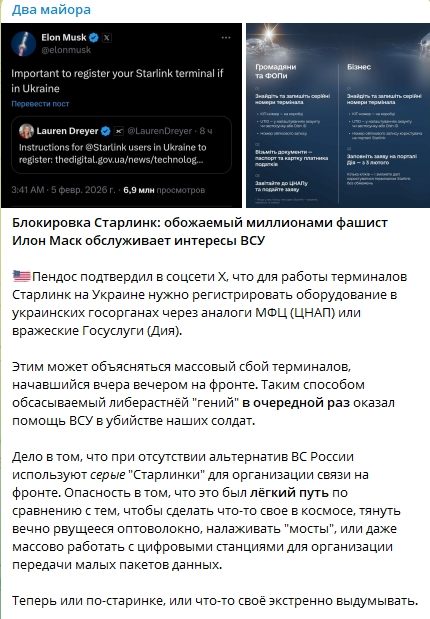 У наших пропагандистов истерика из-за отключения Илоном Маском Старлинка для нас