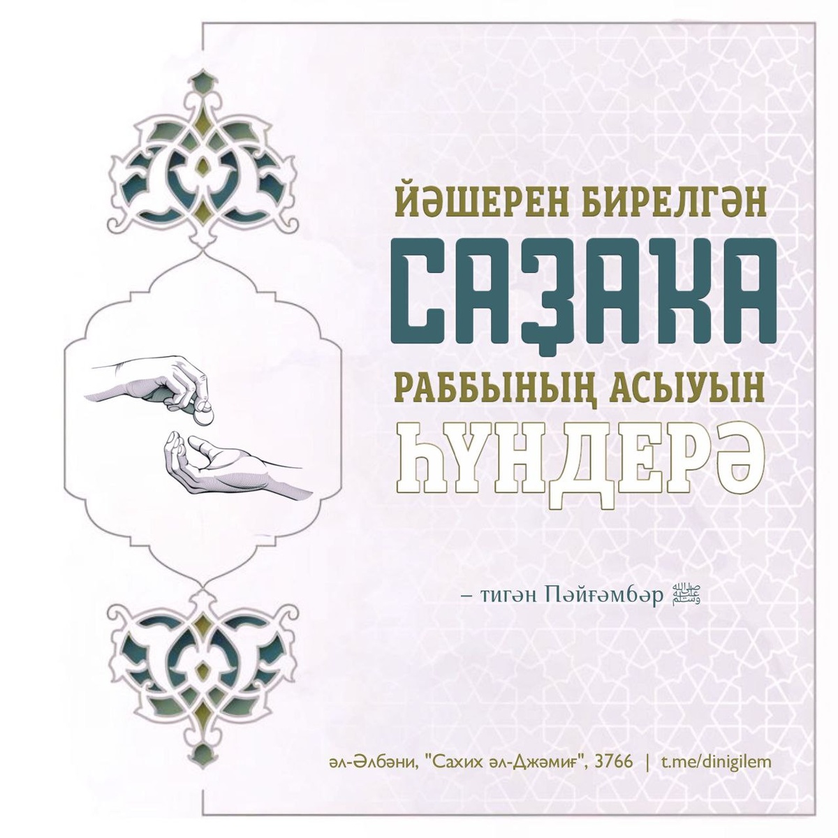 ✳️ "Туғанлыҡ ептәрен һаҡлау ғүмерҙе оҙайлы итә, ә йәшерен бирелгән саҙаҡа Раббының асыуын һүндерә", – тигән Пәйғәмбәр ﷺ.