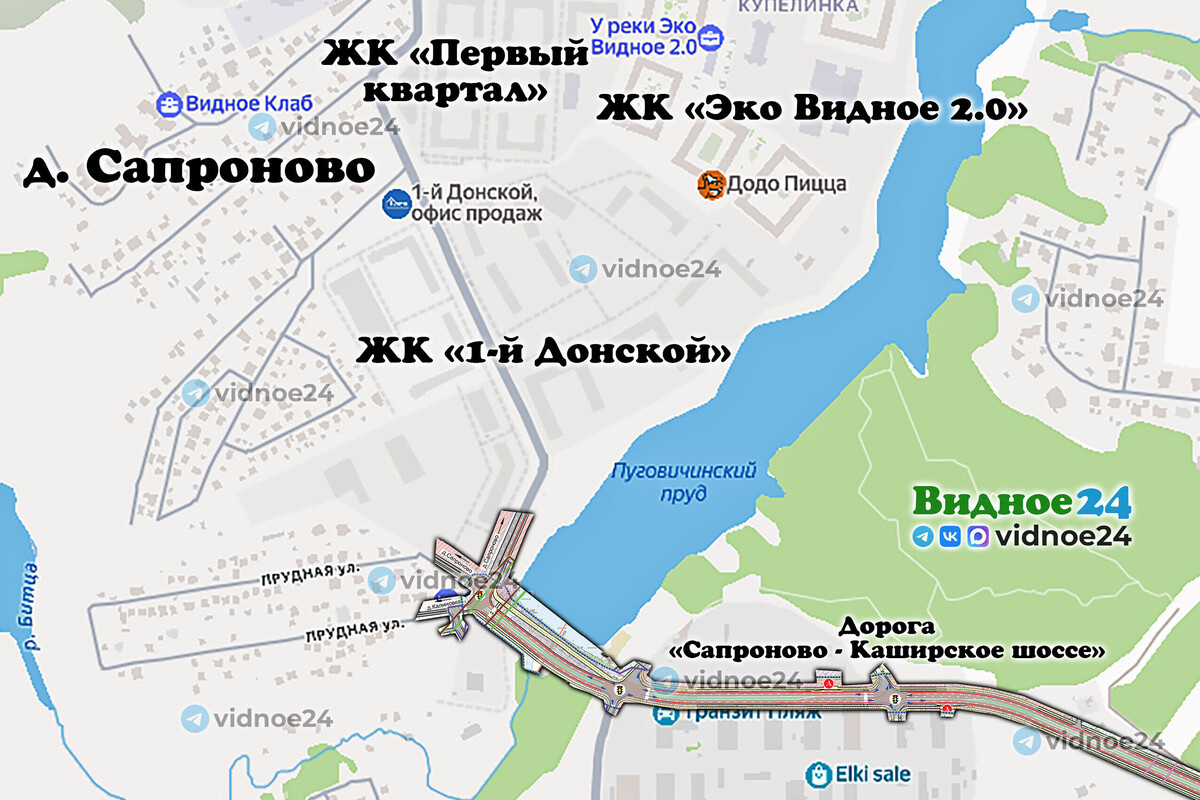 В феврале 2023 года власти Московской области заключили контракт стоимостью 3.9 млрд. рублей на строительство новой 4-полосной дороги от Каширского шоссе в районе деревни Горки до деревни Сапроново в районе дамбы Пуговиченского пруда на реке Купелинка. При этом подрядчик должен был построить 4-полосный мост через реку Купелинка сразу за дамбой Пуговиченского пруда. Согласно контракту, эта 3-километровая дорога должна быть готова к январю 2027 года, но в связи с тем, что до этих пор выполнено не более 5% всех работ, Дирекция дорожного строительства Московской области решила расторгнуть этот контракт. Теперь власти Московской области будут искать нового подрядчика, который построит эту дорогу. Вполне вероятно, что им станет компания «Стройтрансгаз», которая в настоящее время в Ленинском городском округе реконструирует Каширское шоссе и собирается строить часть дороги «Щербинка - Федюково - Каширское шоссе», а также дорогу из мкр. Купелинка до железнодорожной станции «Калинина».
