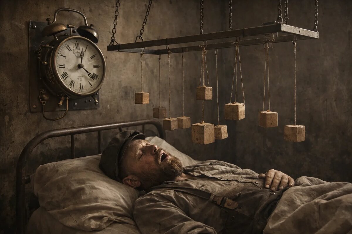В современном мире миллионы людей ставят по пять утренних будильников, включают умные лампы, читают советы психологов. И всё равно – иногда могут проспать. Проблема опоздания встречалась в каждой эпохе, вот только в ХIХ веке боролись с ней совершенно по-другому. Да так что современные лайфхаки рядом с подобными методами выглядят детским садом Директор одно из заводов в США придумал устройство, которое буквально выбивало человека из сна. Рабочие прозвали его просто и честно – «мозгобойка». История началась вполне буднично. В Америке конца XIX века работал крупный завод, выпускавший тракторы и сельхозтехнику. Несколько тысяч рабочих, общежития рядом с производством, маленькие отдельные комнатушки, удобства на этаже. В придачу – столовая, клуб, библиотека и, разумеется, кабак. Проблема была предсказуемой. В дни зарплаты сотрудники дружно отмечали успехи. Виски, бренди и прочий алкоголь делали своё дело. После получки половина завода пустовала, а вторая – пребывала в состоянии философской