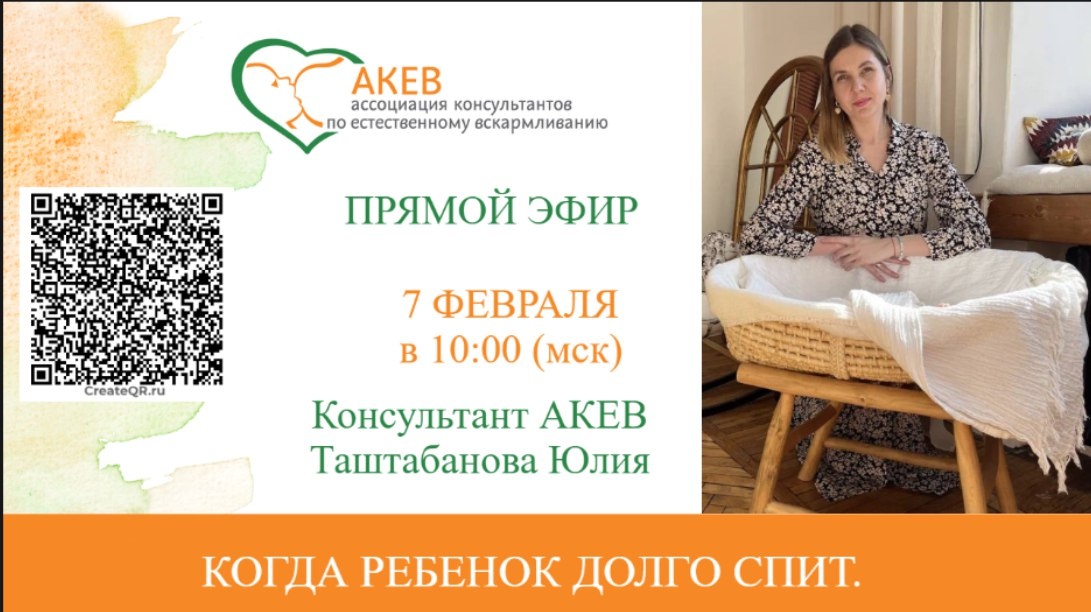 ! Приглашаем вас за очередной порций полезной информации. 💡7 февраля в 10.00 состоится эфир «Когда ребенок долго спит» Эфир проведет консультант по гв АКЕВ, доула - Таштабанова Юлия. В эфире разберём: - нормы сна новорождённого - «красные флаги» долгого сна новорождённого. - связь кормления и сна Эфир пройдет в Контакте на странице АКЕВ vk.com/akev_info Ждем вас на встрече — будет полезно и важно!