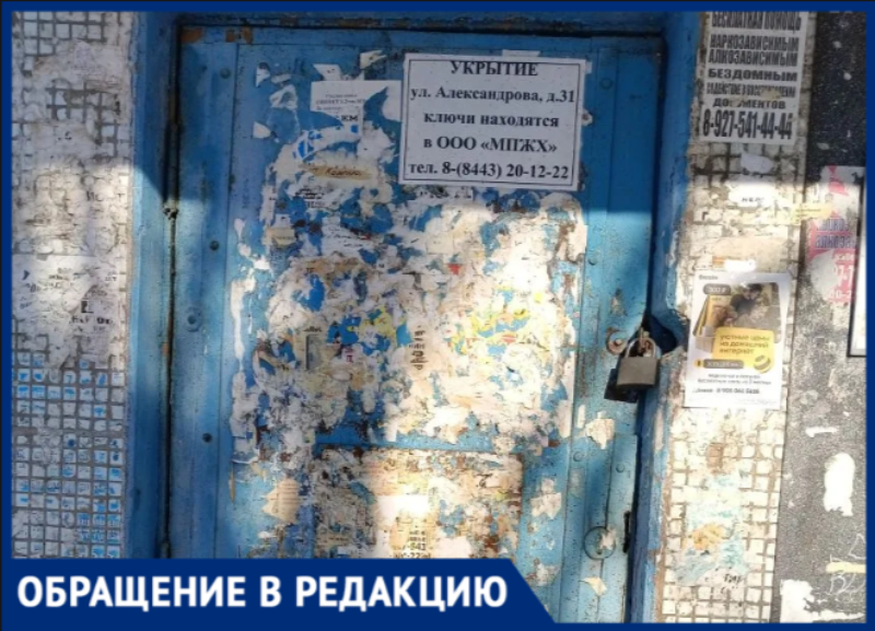 В редакцию «Блокнот Волжский» обратились жители дома №31 на улице Александрова. Они просят обратить внимание администрации Волжского на состояние защитного укрытия в их многоквартирном доме. По словам горожан, в условиях ежедневных объявлений беспилотных атак помещение, которое должно обеспечивать безопасность, абсолютно не оборудовано.